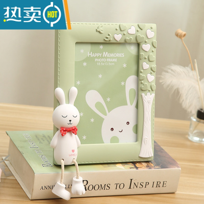 敬平7寸创意可爱相框摆台照片摆件儿童房桌面相架卡通老鼠家居装饰品 害羞兔 竖 绿色 7寸