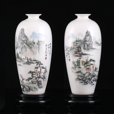MULTIPOTENT中国白羊脂玉瓷花瓶客厅玄关陶瓷摆件徐宝敬作品-山清水秀一对