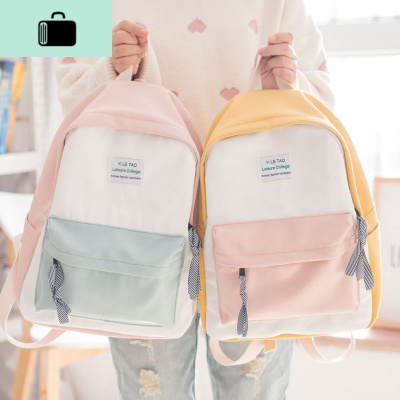 帆布男双肩包女学院风潮韩版百搭学生书包森系撞色背包小清新NEW LAKE