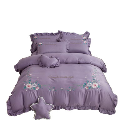 美帮汇花边款小花四件套一米八床单被罩200×230少女心 公主风双人 男生