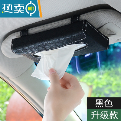 敬平车载纸巾盒挂遮阳板椅背天窗车用抽纸盒挂式创意皮革汽车内饰用品 遮阳挡纸巾盒(黑色)升级款