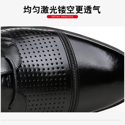 新款透气男鞋低帮商务正装皮鞋增高镂空凉鞋系带洞洞鞋SJ