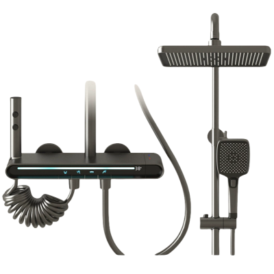 汉德斯科家用淋浴花洒套装水镀拉丝枪灰色增压恒温数显氛围灯淋雨淋浴器淋浴套装多出水卫生间