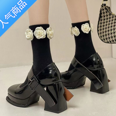 SUNTEK超高跟单鞋女2023秋新款粗跟防水台芭比玛丽珍女鞋辣妹鞋jk小皮