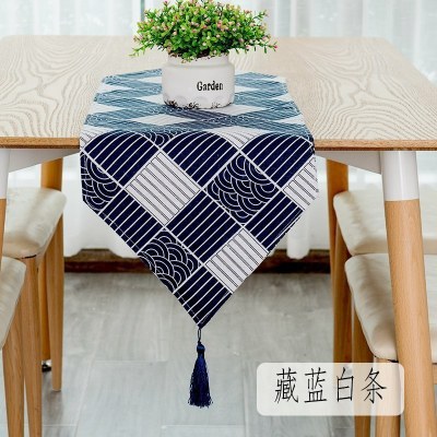 北欧桌旗 棉麻家用桌布电视柜长桌旗欧式茶几现代简约轻奢床旗 藏蓝白条 30*100cm(适合60cm左右小桌或柜子)