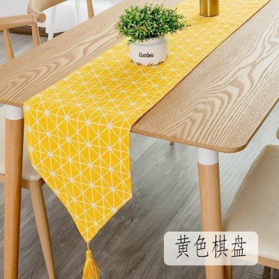 北欧桌旗 棉麻家用桌布电视柜长桌旗欧式茶几现代简约 黄色棋盘 30*240cm(适合180-200cm左右桌子茶桌柜子)