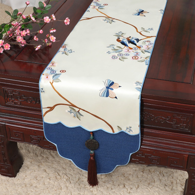 新中式古典玉桌旗茶几长条布艺中国风桌布床柜旗电视柜盖布 比翼双鸟 34*200适合桌长140-150CM