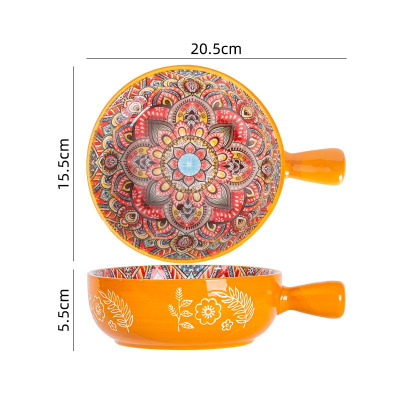 波西米亚家用烤盘手柄碗餐具套装高颜值饭碗双耳汤碗盘子黄波斯8英寸手柄碗1036
