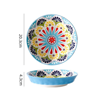 波西米亚家用烤盘手柄碗餐具套装高颜值饭碗双耳汤碗盘子蓝波斯9英寸手柄盘1036