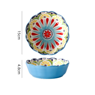 波西米亚家用烤盘手柄碗餐具套装高颜值饭碗双耳汤碗盘子太阳花6英寸沙拉碗1036