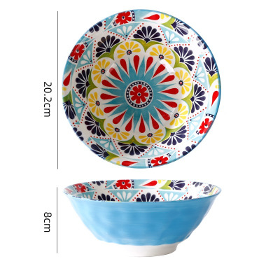 波西米亚家用烤盘手柄碗餐具套装高颜值饭碗双耳汤碗盘子蓝波斯8英寸手柄碗1036