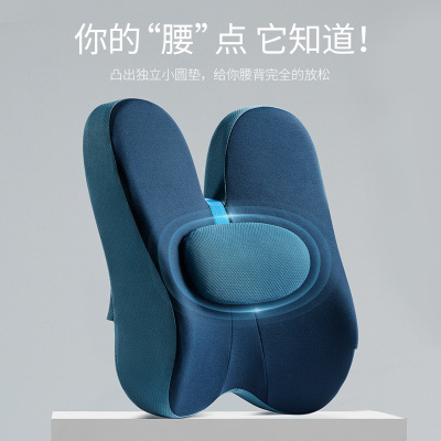 佳奥 汽车腰靠 汽车座椅靠垫护腰 办公室靠背透气腰垫 腰部支撑 可调节垫子 记忆棉 升级款带小枕[藏青色]