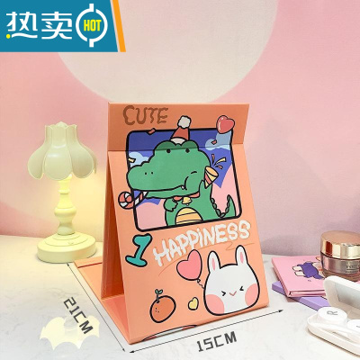 敬平大号台式折叠化妆镜台式大号梳妆镜便携纸镜随身镜镜子 大号橘红色小恐龙送口袋镜便携式用镜
