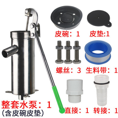 汐岩压水井手动 摇水泵家用水井摇水机井水井头手压水井头抽水泵抽水器不锈钢摇井泵配件迷你吊芯 整套水泵+5套皮碗