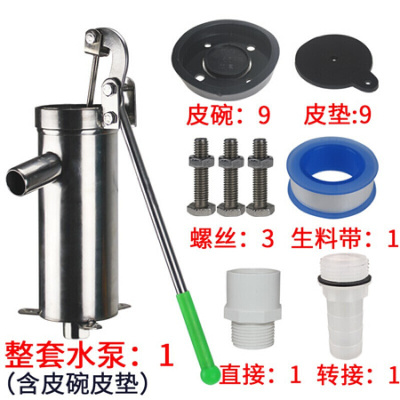 汐岩压水井手动 摇水泵家用水井摇水机井水井头手压水井头抽水泵抽水器不锈钢摇井泵配件迷你吊芯 整套水泵+3套皮碗