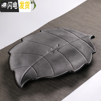 三维工匠日式黑陶茶具套装创意陶瓷排水功夫茶台纯色托盘现代家用简约茶盘 黑陶枫叶茶盘