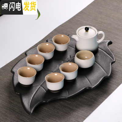 三维工匠日式黑陶茶具套装创意陶瓷排水功夫茶台纯色托盘现代家用简约茶盘 黑陶枫叶茶盘8件