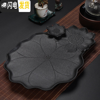 三维工匠陶瓷茶盘排水储水干泡盘功夫茶具泡茶台黑陶石磨荷花汝窑青瓷 黑陶荷风茶盘[排水]