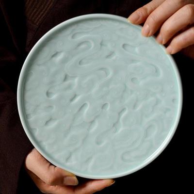美帮汇手工浮壶承影青刻干泡台海浪纹祥云迷你果盘果碟茶壶茶盘