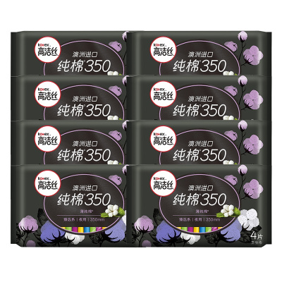 高洁丝臻选系列澳洲纯棉卫生巾350mm夜用4片*8包姨妈巾