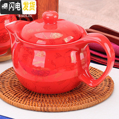 三维工匠泡茶壶水壶单壶冲茶壶紫砂壶功夫茶具小套装家用陶瓷玻璃中式 茶壶-双层-红金叶子