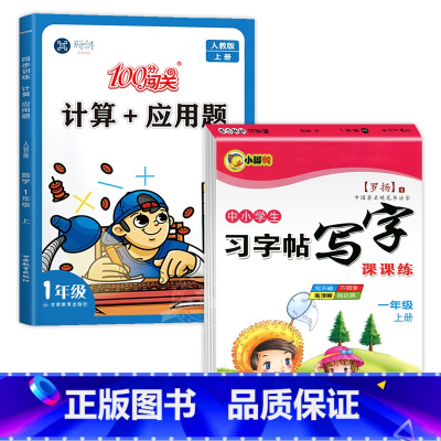 [2册]语文练字帖+计算题 一年级上 [正版]临摹字帖一年级上册练字帖人教版语文同步字帖每日一练 小学生1年级练字字帖控