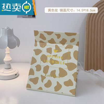 敬平网红ins风镜子化妆镜折叠家用小型便携学生宿舍台式桌面梳妆镜 黄色纹 升级全面屏便携式用镜
