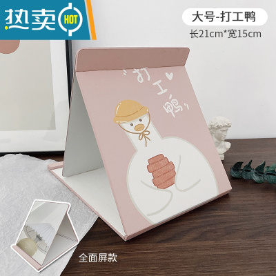 敬平ins风镜子化妆镜台式桌面学生宿舍全面屏折叠便携可爱小镜子家用 大号打工鸭便携式用镜