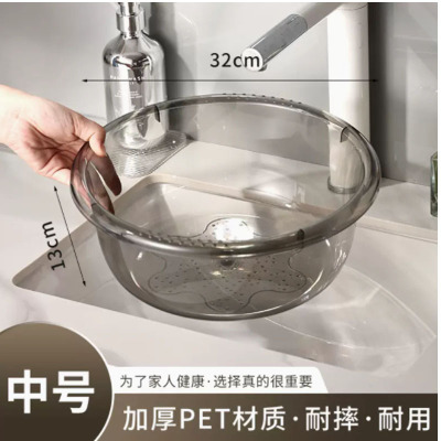 芳美达 透明白色加厚塑料脸盆 中号 单个装 透明色