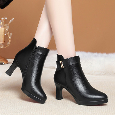 高跟短靴女秋冬季新款时尚厚底防水台加绒棉鞋防滑女士单靴子