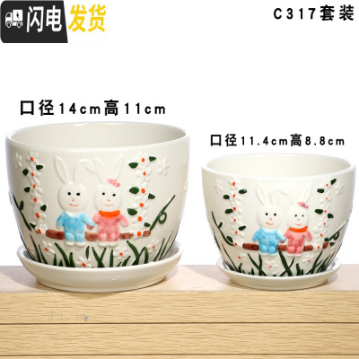 三维工匠花盆陶瓷带托盘简约大号家用特大号绿萝吊兰多肉绿植花盆 褐色C317套装 中等花盆容器