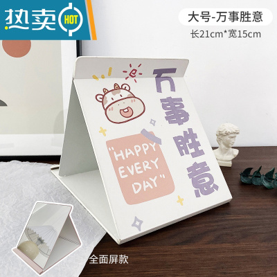 敬平ins风便携折叠化妆镜家用可爱大号宿舍梳妆镜学生桌面台式小镜子 褐色 大号-万事胜意便携式用镜