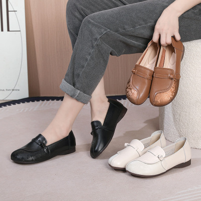 26春秋季新款复古粗跟浅口头层牛皮单鞋通勤时尚舒适百搭四季女鞋