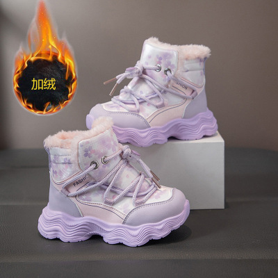 儿童加绒雪地靴保暖女童棉靴冬季新款男童加厚棉鞋女孩短靴潮