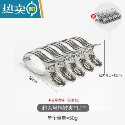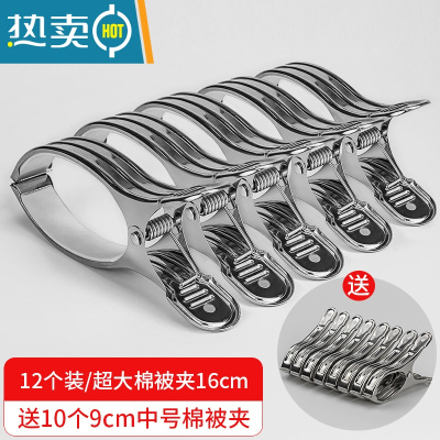敬平晒被子大夹子特大衣夹固定不锈钢被夹晾衣架超大晾衣服大号防风夹 [特惠93%顾客选择]超大号12个装-再送1