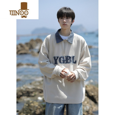 YANXU牛仔polo衫卫衣男美式高街潮牌休闲宽松学院风翻领外套
