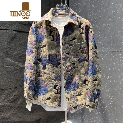 YANXU2023秋季新款潮流百搭个性休闲外套男士痞帅时尚小熊刺绣翻领上衣