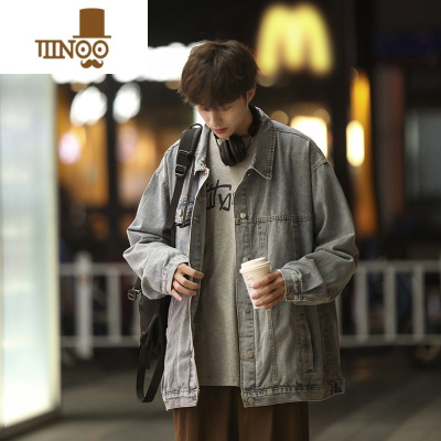 YANXU牛仔外套男士新款宽松百搭休闲上衣服潮牌高街痞帅翻领夹克