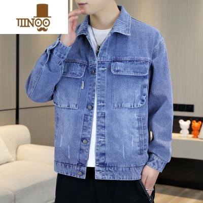 夹克男牛仔外套男春秋季美式复古潮牌毛边翻领工装痞帅潮流夹克男