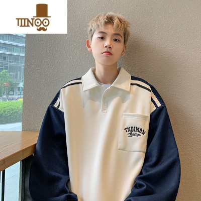 YANXUpolo衫卫衣男美式高街潮牌宽松学生插肩袖撞色翻领外套