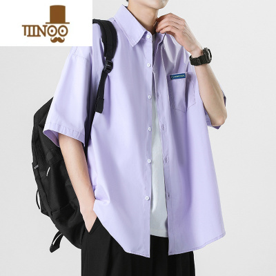YANXU港风冰丝短袖衬衫男士夏季薄款纯色休闲宽松简约潮牌翻领衬衣外套