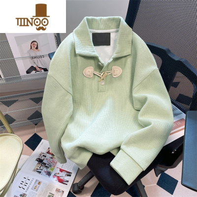 YANXU日系港风华夫格牛角扣翻领卫衣男女设计感小众polo衫上衣外套