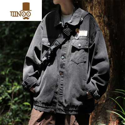 YANXU新款拼接设计感牛仔外套男款休闲宽松潮牌百搭翻领牛仔衣夹克