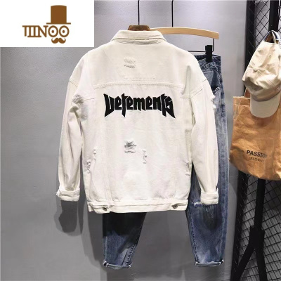 YANXU白色牛仔外套男士ins潮款潮牌痞帅翻领夹克韩版潮流修身上衣