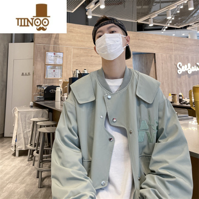 YANXU男士立领潮流百搭拼色翻领夹克秋季青年大口袋棒球服时尚修身外套