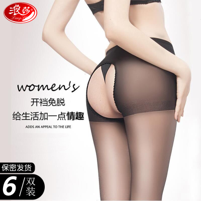 浪莎开档丝袜女连裤袜超薄款夏季情趣性感防勾丝黑丝诱惑开裆免脱
