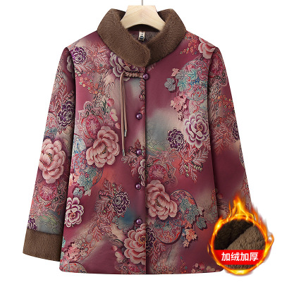 年老年奶奶装冬装外套时尚中老年女士休闲大衣印花款老太太女