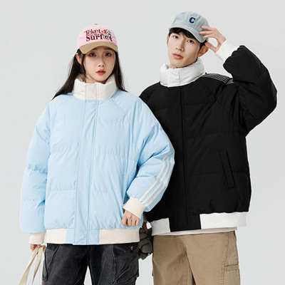 情侣款棉衣秋冬季短款立领百搭美式潮牌学院风男女同款外套面包服