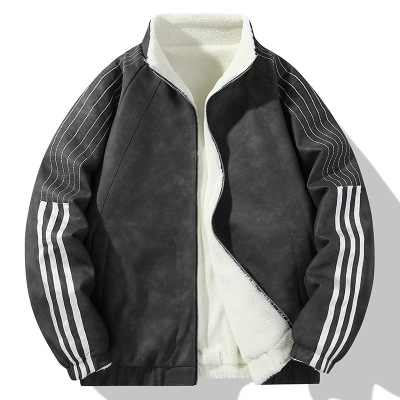 棉衣男秋冬季新款情侣羊羔绒加厚保暖外套宽松百搭立领双面穿棉服