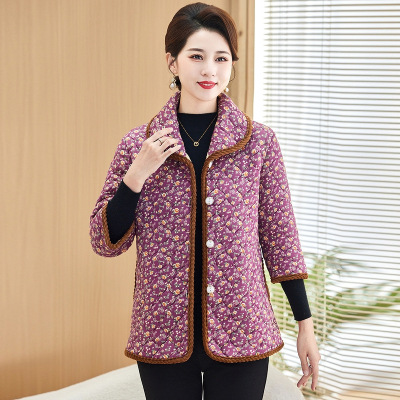 50岁妈妈棉衣中老年中袖妈妈装棉服女50岁中年加绒棉袄大码女装冬